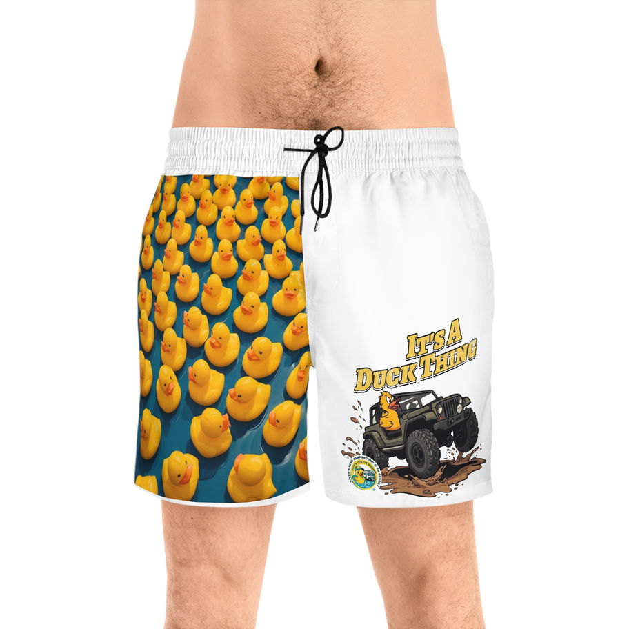 Duck Pattern Swim Shorts — "It's A Duck Thing" Graphic Beach Trunks