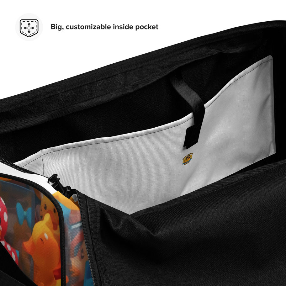This duffle bag is the perfect companion for every occasion—take it with you when traveling, running daily errands, or going to the gym. The bag is spacious and will keep all your stuff neat and organized with its multiple pockets, including one with a zipper for your most valuable possessions. Adjust the padded shoulder strap when the bag’s helping you carry heavier things, and continue your daily run without a worry! • 100% polyester with black interlining • Fabric weight: 9 oz./yd.² (305 g/m²) • One size: 22″ × 11.5″ × 11.5″ • T-piping for stability • Adjustable and removable padded shoulder strap • Dual padded handles with hook & loop fasteners for easy carrying • Mesh side pocket • Multiple inside pockets • Blank product components sourced from China