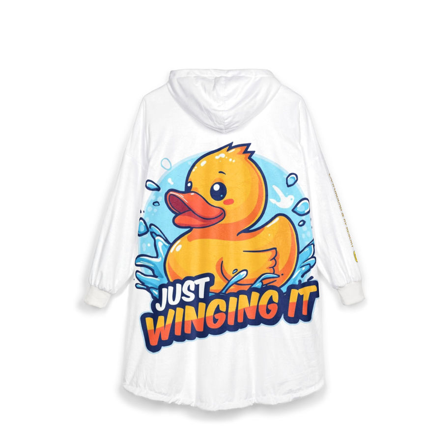 Hooded Blanket - 'Just Winging It' Cute Rubber Duck Hoodie Blanket