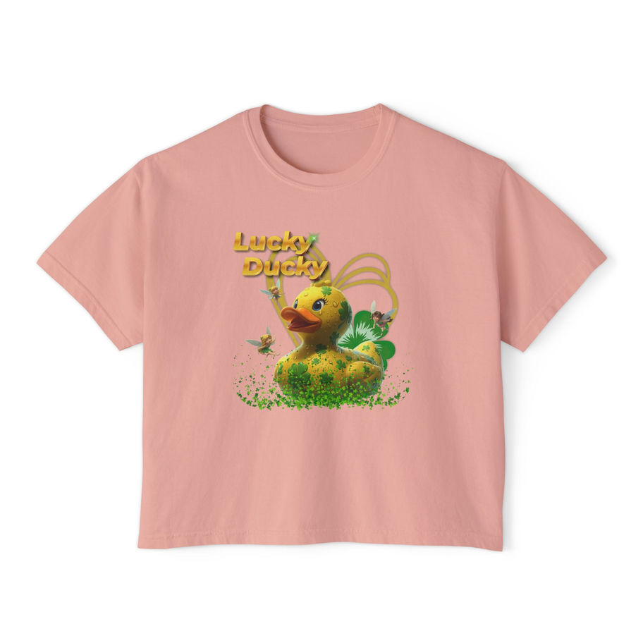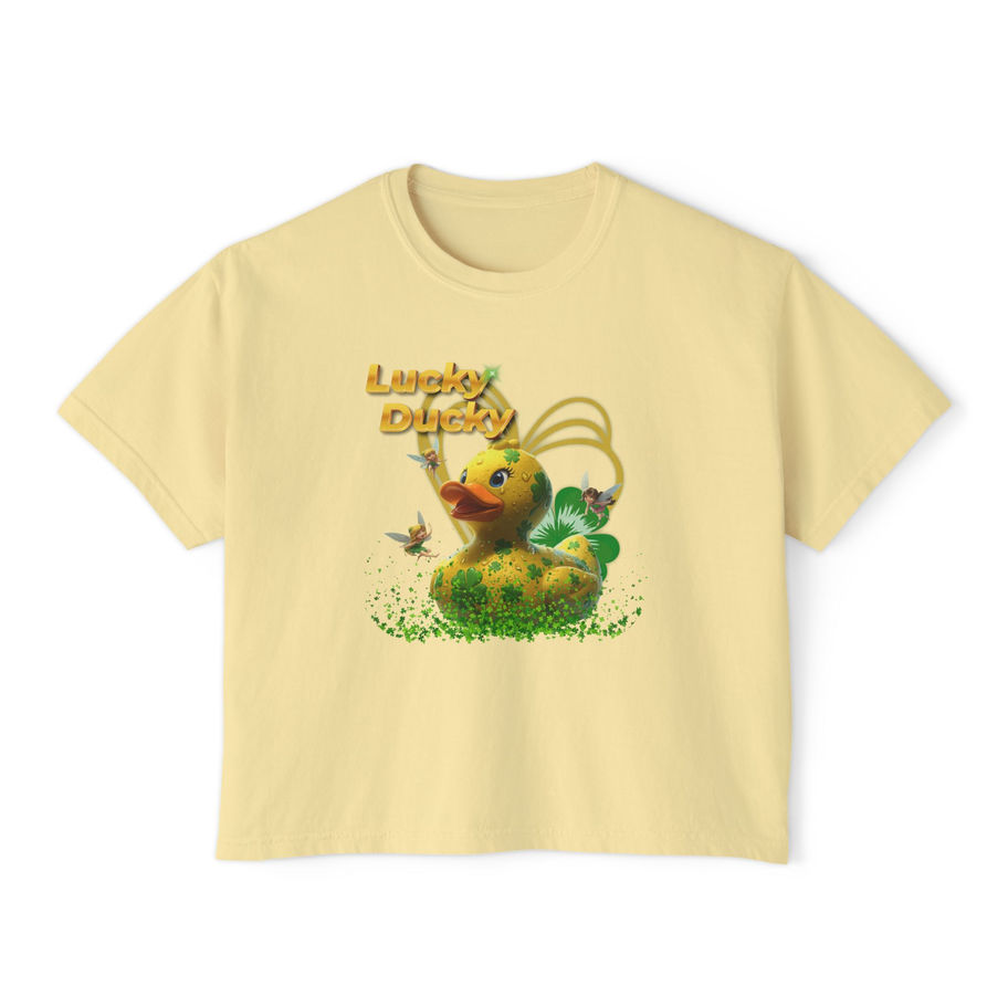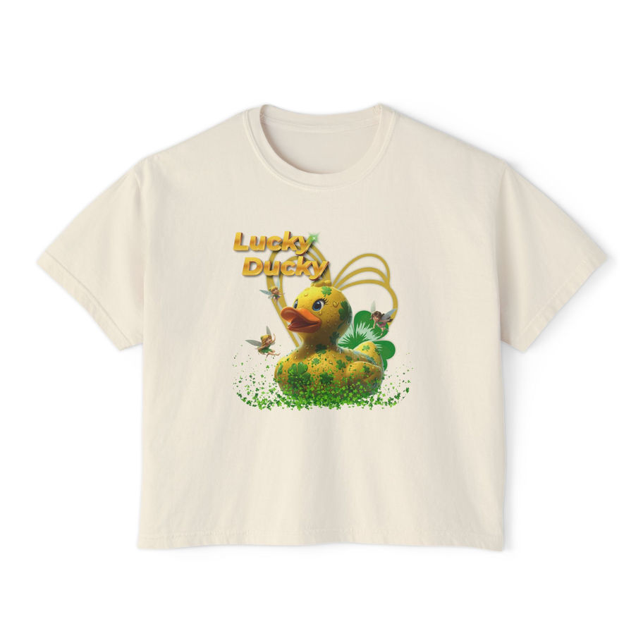 Lucky Ducky Women's Boxy Tee — Cute Retro Rubber Duck Graphic